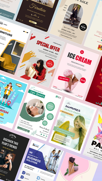 O aplicativo 'Poster Maker - Flyer Maker Ads' é uma ferramenta prática e acessível para a criação de pôsteres e anúncios. Com uma vasta coleção de mais de 1000 modelos prontos, o usuário pode facilmente escolher um design e personalizá-lo em poucos minutos. Não é necessário ter habilidades gráficas, pois o aplicativo oferece uma interface intuitiva que permite adicionar texto, stickers e alterar fundos de maneira simples. Além disso, é possível desfazer e refazer alterações, garantindo flexibilidade no processo de criação.